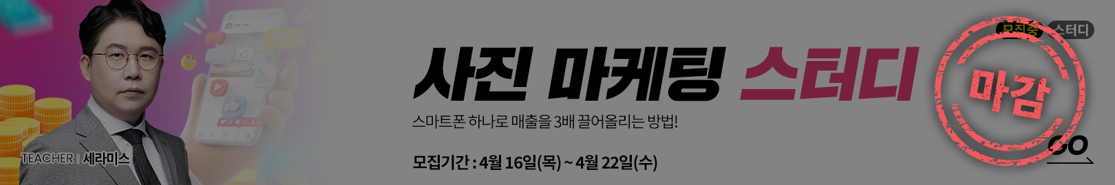 매출 3배 끌어올리는 사진 마케팅 스터디에 참여해보세요.